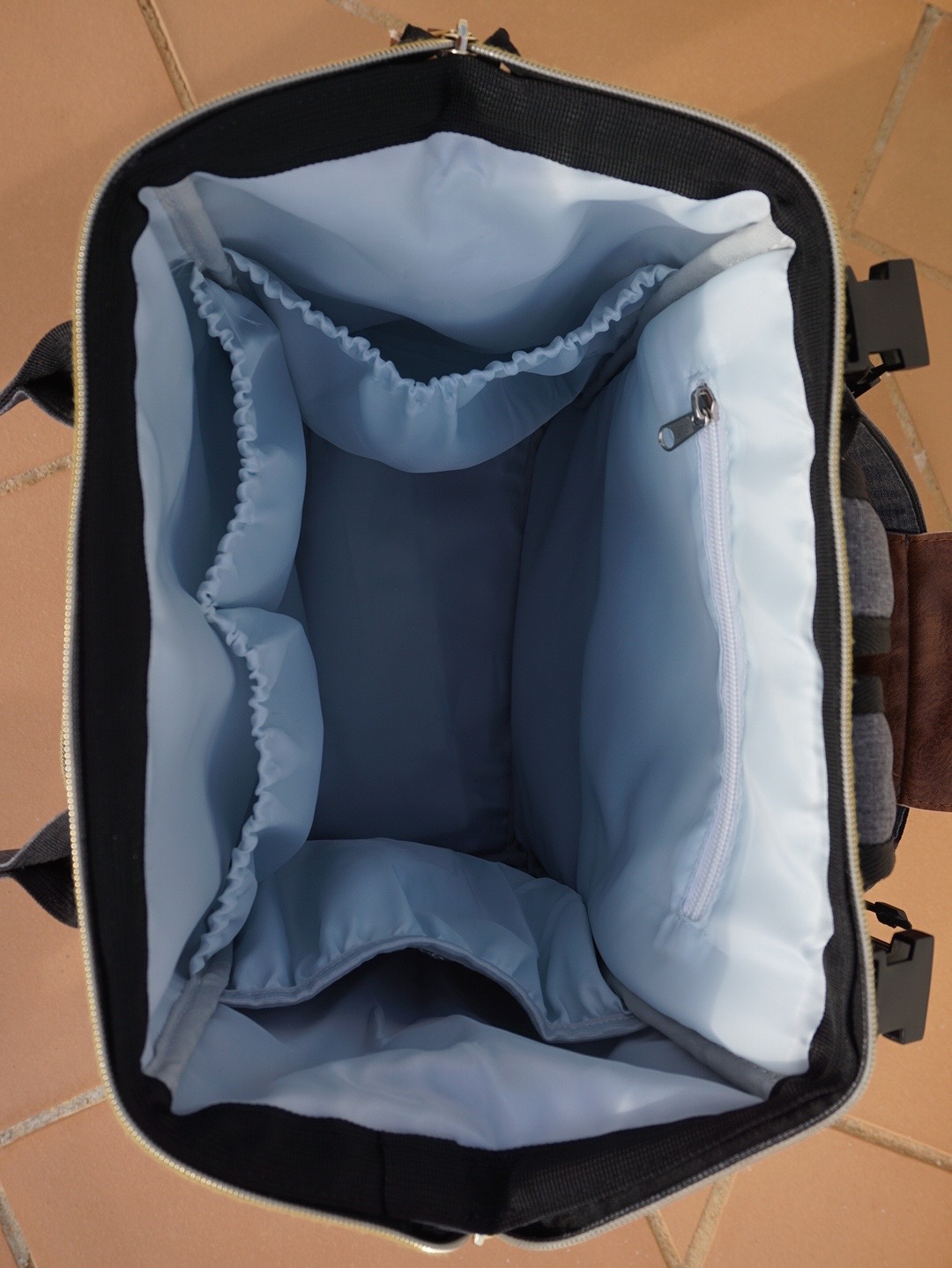 Also, this backpack can hold a lot of stuff. With an extended opening, you can really pack things in there! Seriously, it’s kind of like a Mary Poppins bag. Unfortunately, the downside to the bag’s design is that it’s nearly impossible to open or close the zippers with one hand, which is probably my biggest complaint. Thankfully, the handle straps allow me to grab and go until I have a chance to zip up my pack.