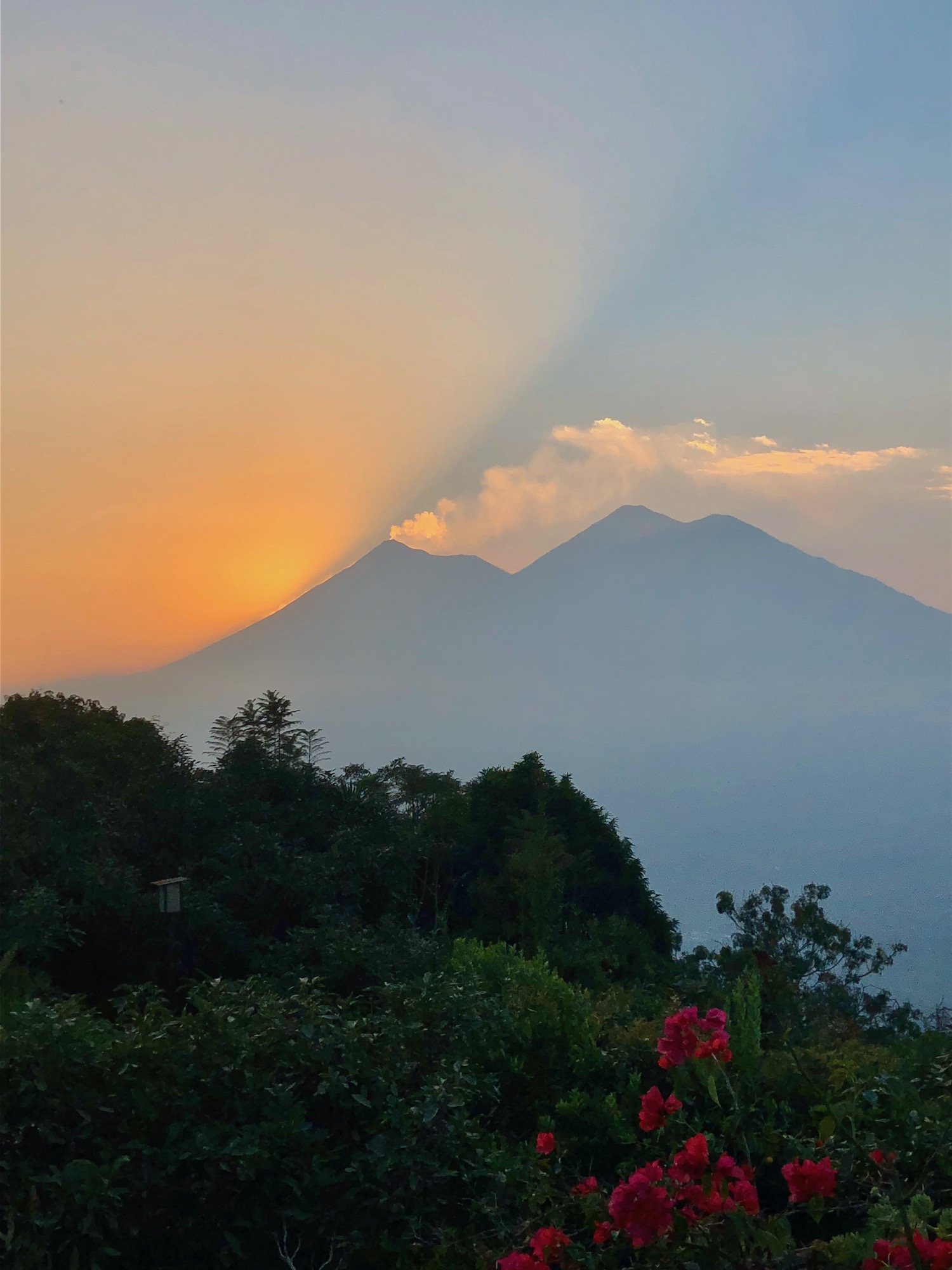 For our final night in Antigua, we enjoyed dinner with a spectacular sunset view. Honestly, I don’t remember what I ate, but I remember DYING over the insane vista from this mountaintop restaurant. Volcan del Fuego was backlit by the sun, as it emitted little puffs of smoke. The city sparkled once the sun went down. It was absolutely charming.