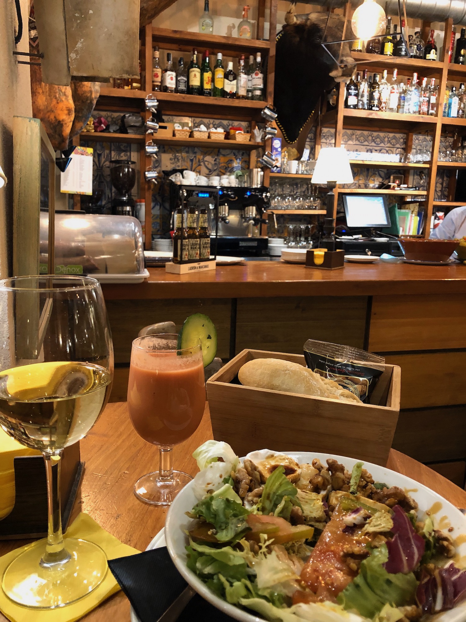 Mercifully, Sevilla has no shortage of great places to eat and drink. In fact, the city comes alive at meal times (and pre-meal times). For some great tapas, I enjoy Bar Catalina La Heroina, which is on the edge of the Santa Cruz neighborhood, and I always end up at Taberna Coloniales, whose out-of-this-world portion sizes continue to take me by surprise. This past year, I found myself dining (alone) at Bar Pelayo twice in two days. Gazpacho in a glass? ¡Sí, por favor! A whole leg of Pulpo to myself? ¿Cómo que no?