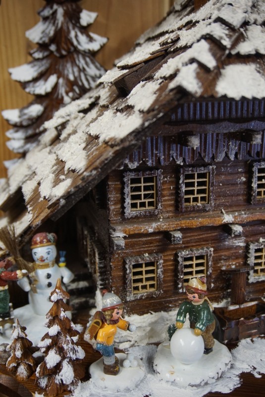 In Triberg, Gerald Burger explained the process of making these intricate artifacts, and he demonstrated how to tell the differences between “real” and “fake” cuckoo clocks. (Half-carved figurines and battery powered ticking are dead giveaways.) My favorites were the chalet clocks, and in particular Gerald’s patented invention of the turning-chalet, which features a summer scene on one side and a winter scene on the other.
