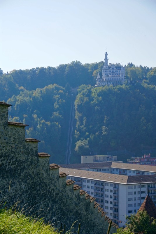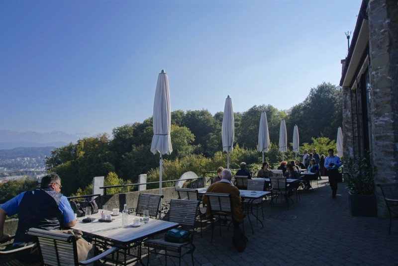 Speaking of views… Château Gütsch is a glamorous boutique hotel (not castle, Hailey) perched atop one of the hills overlooking Lucerne. Intrigued by this castle hotel, we took the funicular up the wooded hillside. To our great delight, we “discovered” an outdoor patio, where we decided to indulge our whims with drinks and desserts as we soaked up the sweeping views of Lucerne from the luxurious Château.
