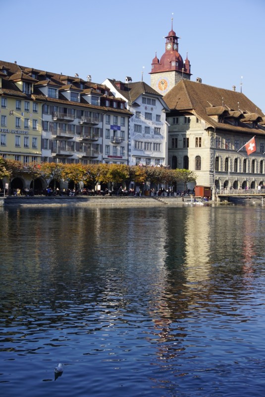 Spelled Luzern in German, this idyllic Swiss town is just a short train ride from Zurich, and it has just become my choice destination for a day trip from Zurich after Justin and I gladly joined our friends visiting from Orlando, Florida one autumn afternoon. With an interesting blend of architecture, the intense blue of the lake waters, and the captivating outline of the Alps, Lucerne is sure to enchant all who visit. I, for one, am certainly under its spell!