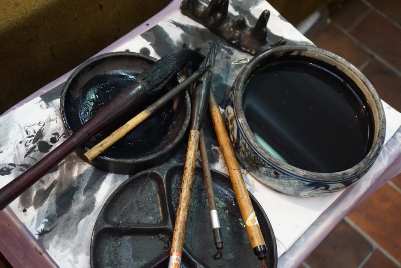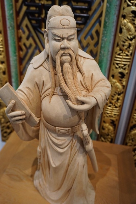 Lukang has a high concentration of artists who keep regional traditions alive. Thanks to our awesome Rotarian hosts, my team met Li Bing Gui, a talented artist who makes outstanding wooden statues and detailed panel carvings. Li invited us into his workshop and art gallery, and after some Chinese tea and awkward pleasantries, he offered to write our names in Chinese calligraphy.