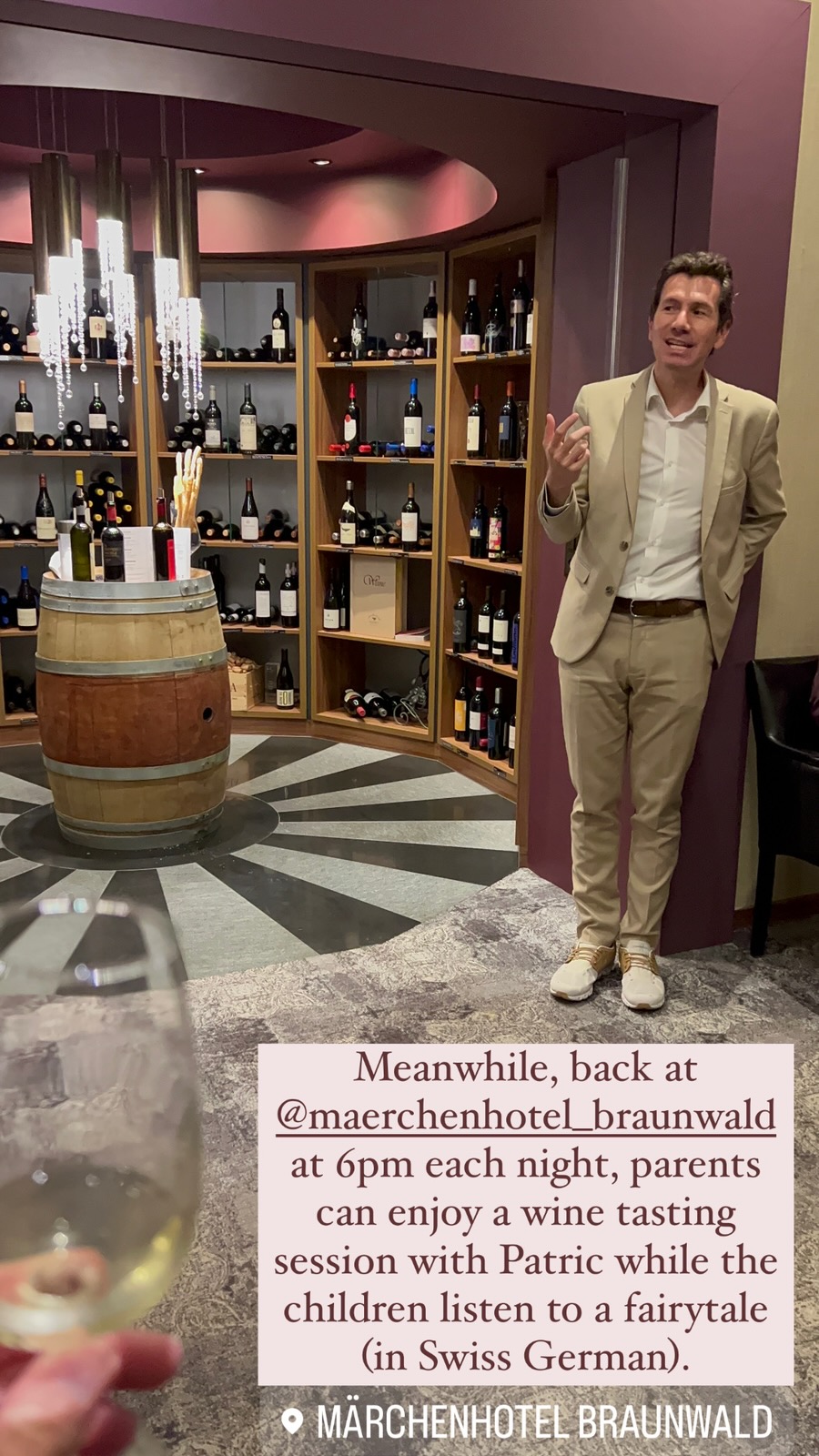 *IMPORTANT NOTE: At its heart, the Märchenhotel is a family-run hotel, created by Swiss people for Swiss people (initially). Of course, they welcome guests from all over the world now. However, owners Nadja and Patric Vogel are committed to honoring the founding of the fairytale hotel, which began with a story told to a crying child in Swiss German in 1976. Thus, they keep some special events (like the nightly wine tasting and fairytale-telling) in the German-language. Their message to international guest (which you can read here) is heartfelt and sincere.