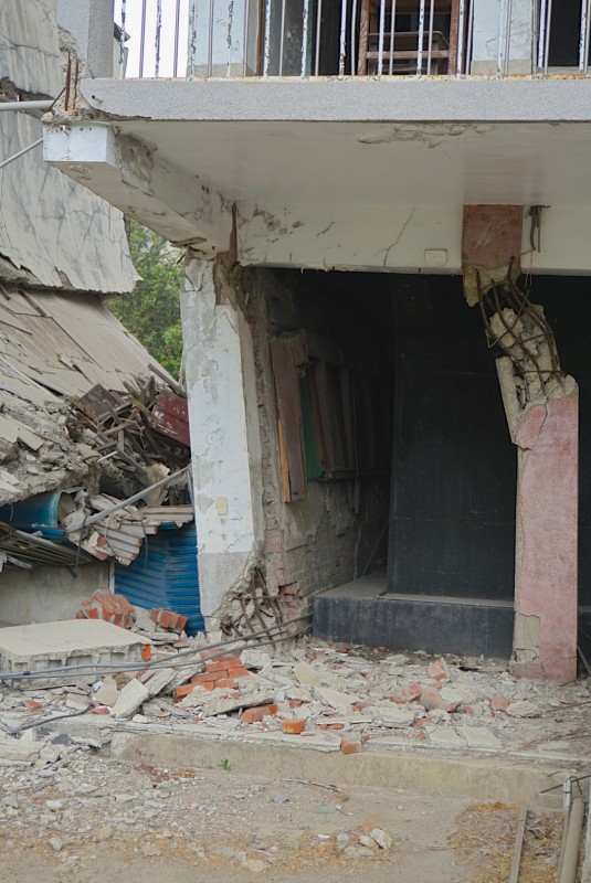 The jumbled remains of the Wuchang Temple sit quietly behind a larger and newer temple in Jiji, the town in Nantou County that was closest to the epicenter. The entire first floor was crushed by the upper levels of the temple as it came crashing down in the night. Visitors can take a close look at the wreckage caused by the 921 Earthquake.