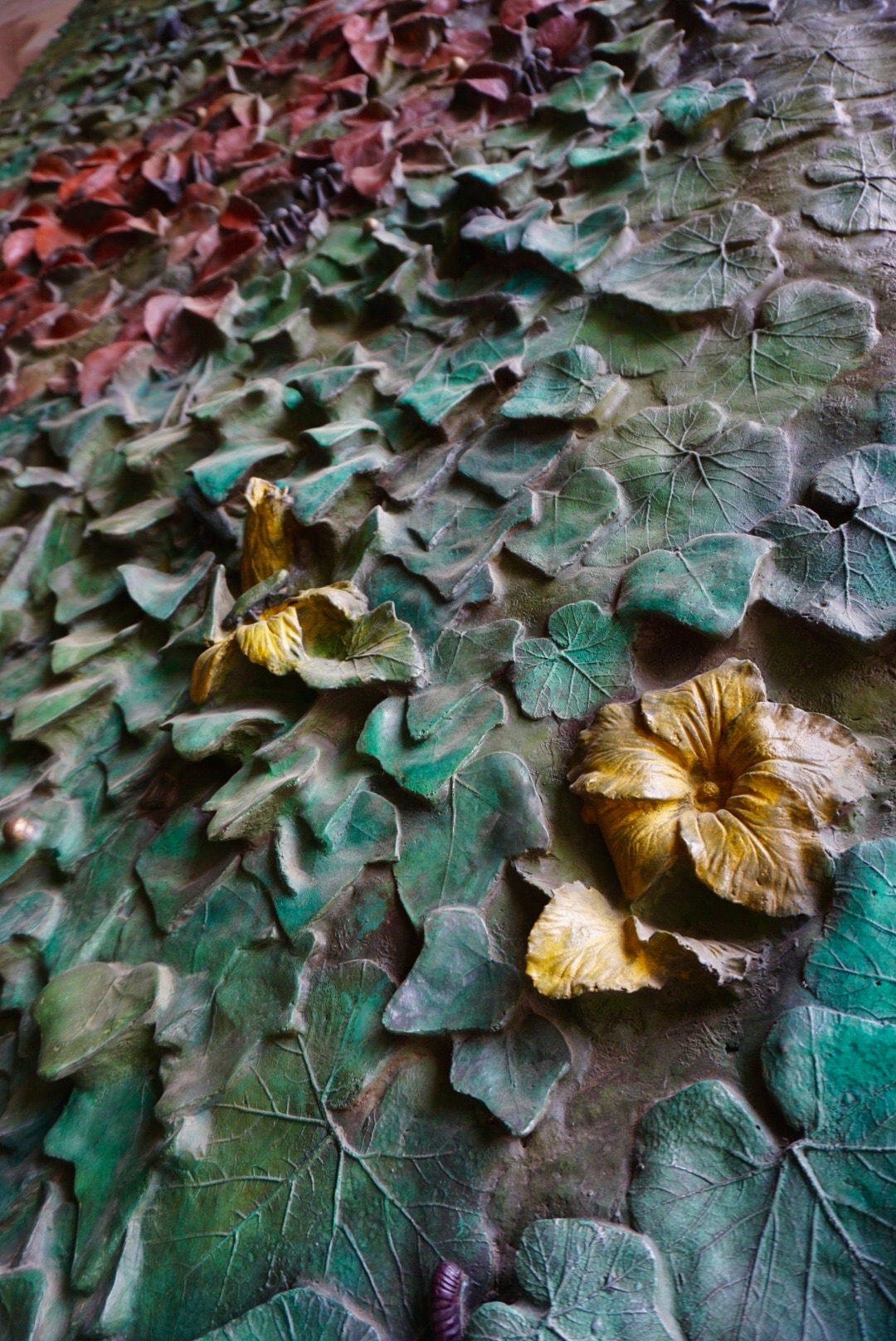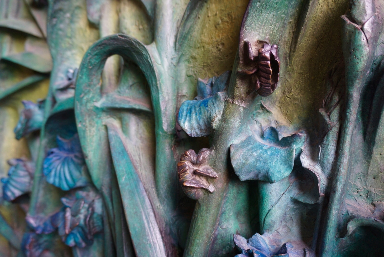 One thing that makes a visit to the Sagrada Familia so fascinating is to see how it changes over time. For example, I was drooling over the bronze doors of the Nativity Façade, which were installed in 2014-2015, seven years after my first visit to the basilica. Designed by Japanese sculptor, Etsuro Sotoo, these giant metal doors are incredibly delicate, featuring the whimsical delights of nature – a dove nestled in the roses, brightly colored insects roaming over leaves and flowers, lush ivy stretching seven meters high.