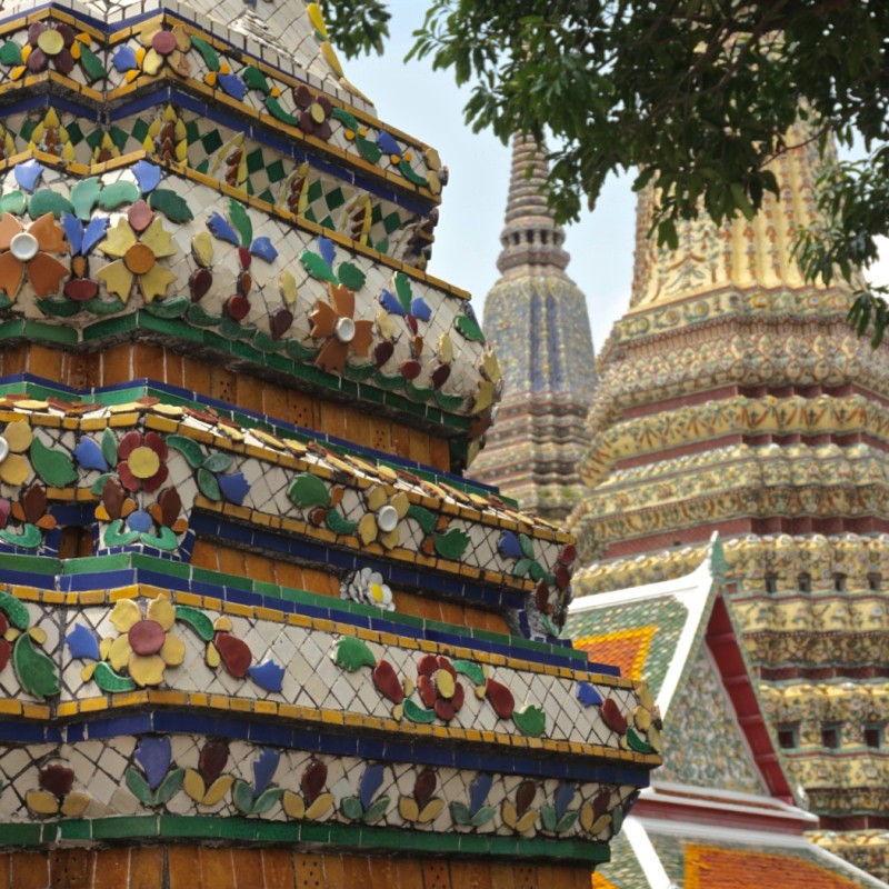 Like the Grand Palace, Wat Pho is a colorful complex full of marvelous details and whimsical design.
